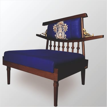 Proudly made in India, our lounge chair features luxurious fabric upholstery meticulously hand-embroidered by artisans of the renowned Beigh Family from Srinagar. Steeped in the centuries-old tradition of Sozni embroidery, the Beighs have dedicated generations to preserving this delicate craft, earning numerous national & international accolades, including the prestigious Shilp Guru Award for their exceptional contribution to Indian handicrafts.